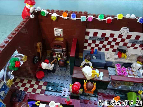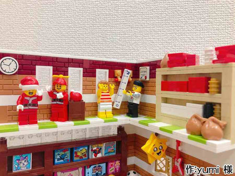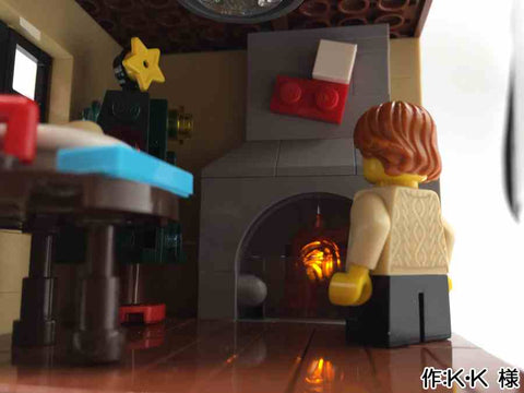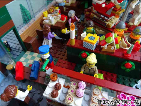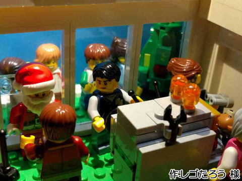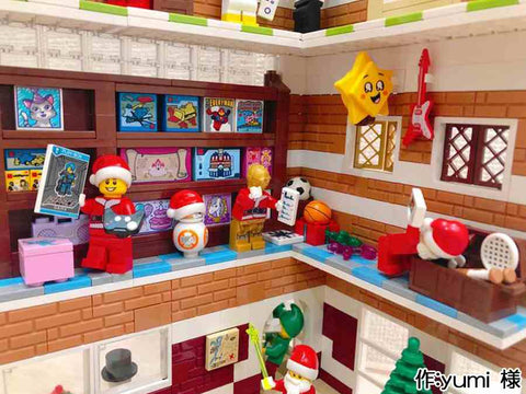 各階層ごとに情景が分かれていて、とても楽しそうな雰囲気が伝わってきます。 また、床と天井を作らないことで作品を一望でき、 下の階が暗くならないようにしている点も見栄えに気を遣っていることが伺えます。 どのミニフィグもいきいきとしていますが、 手紙を運ぶフィグの表情と積み上げられた手紙が躍動感があってとても面白い表現だなと思いました。