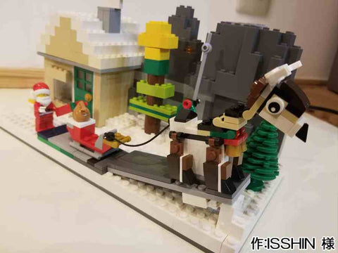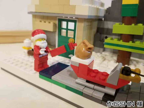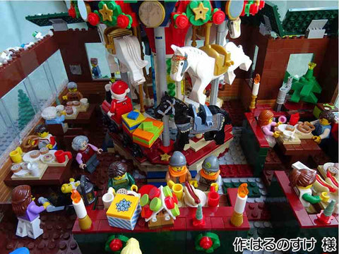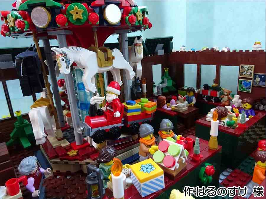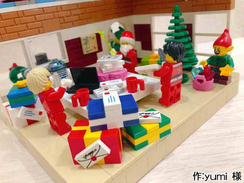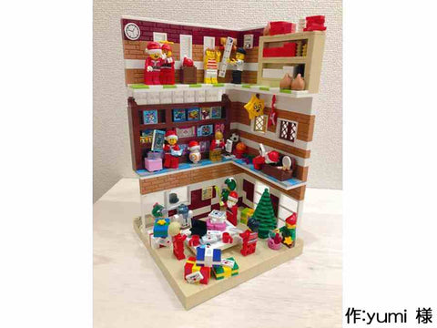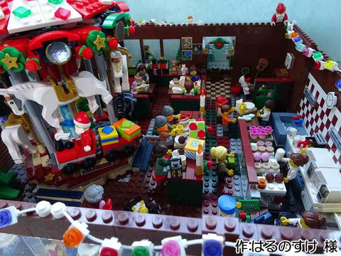 - メリークリスマス!今回は16×16のプレートに、おもちゃ工場を作りました。 機械を使っている人や、出来上がったおもちゃを箱に詰める人がいます。 おもちゃを作っているところを子どもが覗いています。 そのうちの女の子はクリスマスツリーを触っています。 道には、少しだけ雪が積もっています。 お話ししながら作業する人や、真剣に作業する人がいます。サンタさんもいます。 機械の上にランプを付けたところが工夫した点です。