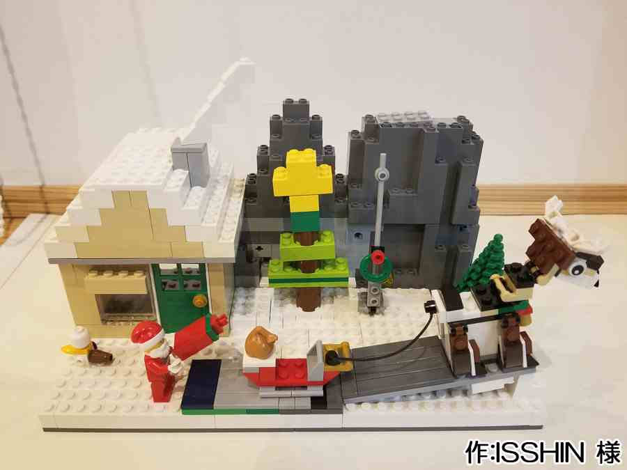 - 7歳の息子が作りました。トナカイは作れなかったので、ピューマでソリを引っ張っているそうです??ツリーの飾 り付けを頑張ったと言っています。