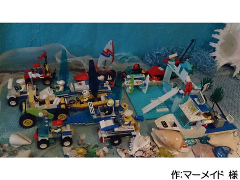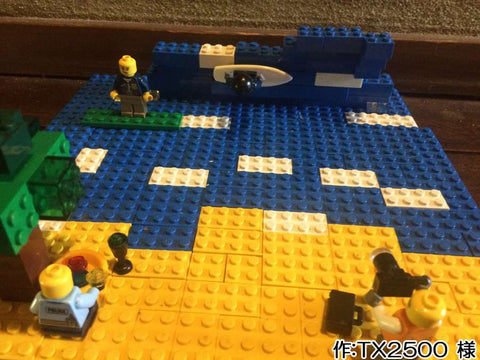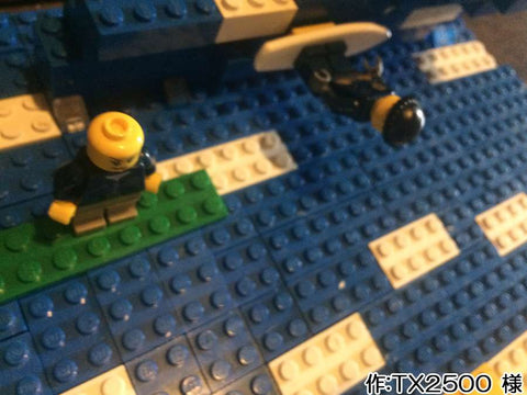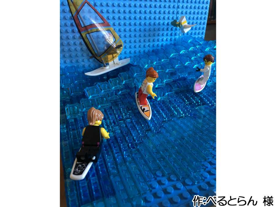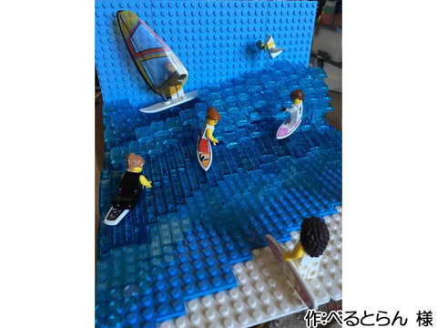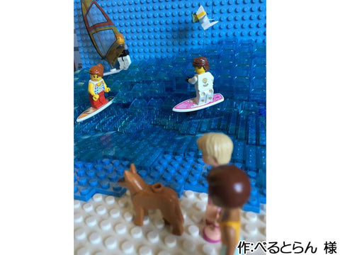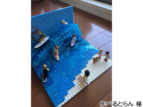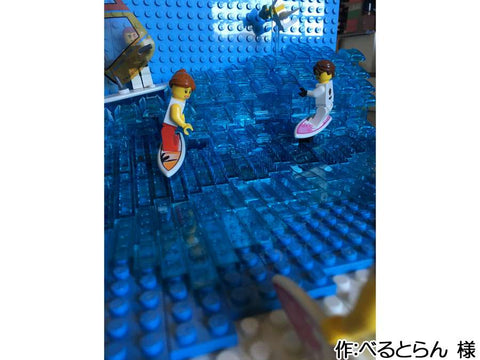 - 文字通りサーフィンをテーマに作りました。夏の感じが出ていればと思います。もともとはブルーの透明な 部品でなにか海に関する作品ができないかと思っていて、思いつきました。波のダイナミックな感じをどう表現 するのかはいろいろと考えました。