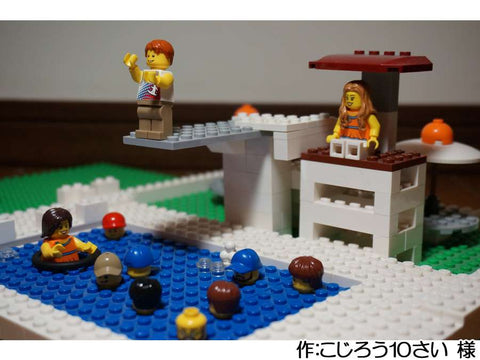 - 飛込みする人、浸かる人、もぐる人、監視員さん... プールで楽しく遊んでいる人たちを表現しました。