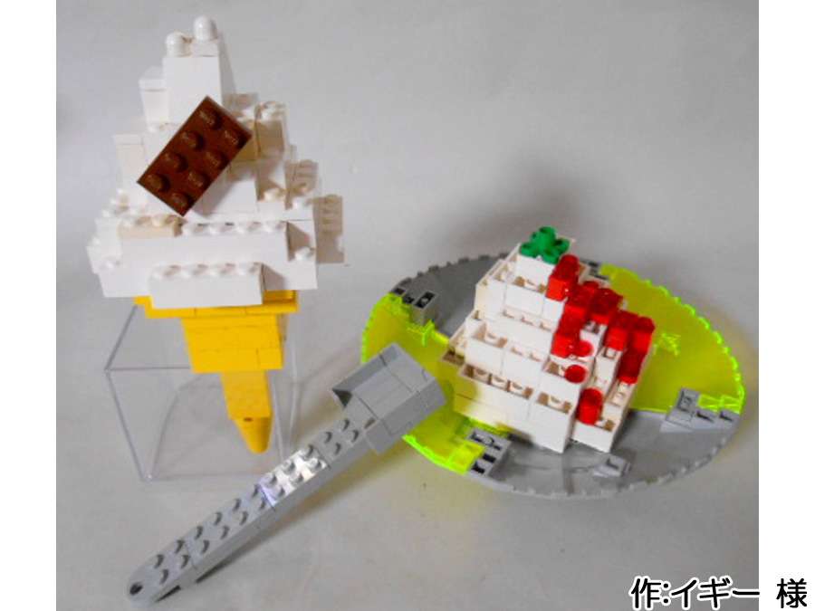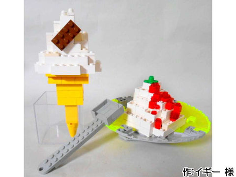 - ヤケた白色ブロックがバニラアイスとソフトクリームに見えたので作ってみました。 なお、赤色のブロックは溶岩ではなくイチゴシロップで、緑色のブロックはミントの葉です。