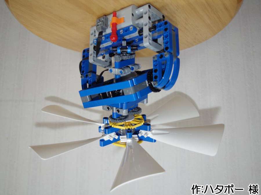 パワーファンクションのLモーターで羽根が回転し,また,本体も回転します。 天井扇風機は昔の電車などでよく見ました。今は,あまり見ないですね。 実際に動いている動画はこちら