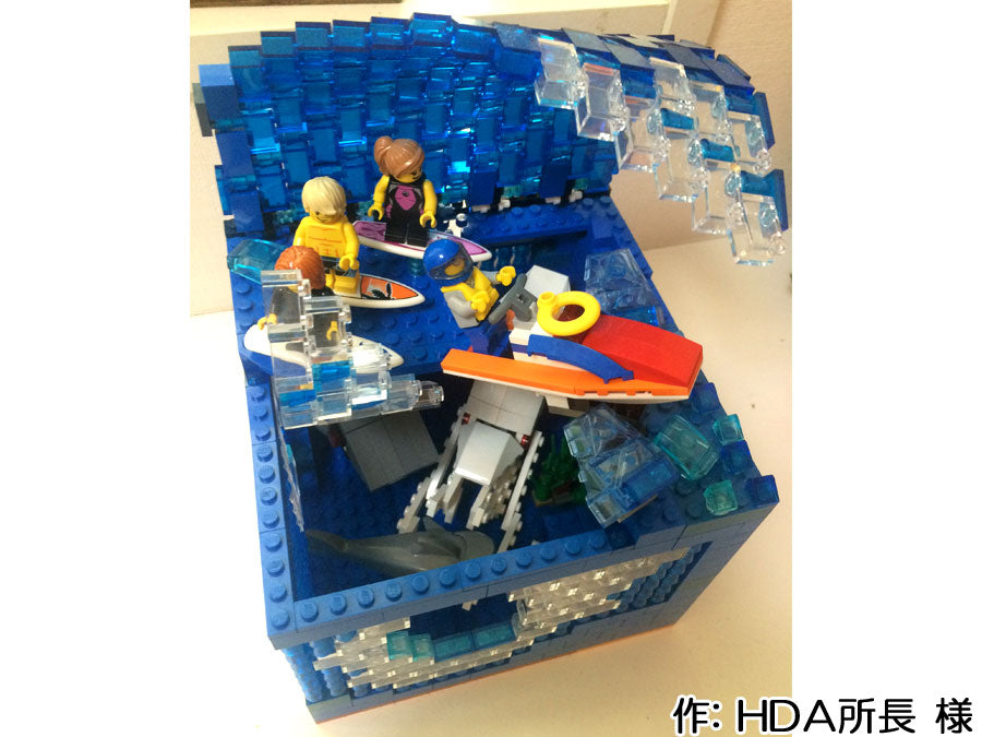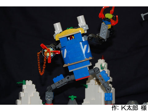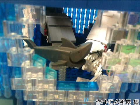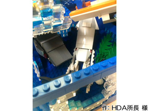 - 夏なので、水陸両用ロボットを作って海底探検に来ました! ロボットだけでなく海底の様子も工夫して作りました。 間接を使っていますので自由にポーズがとれます。