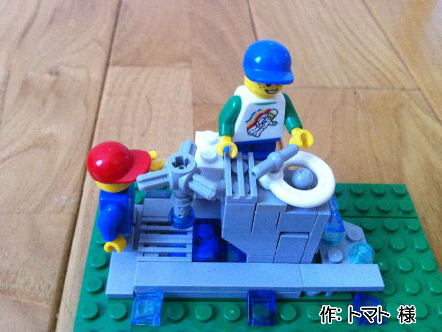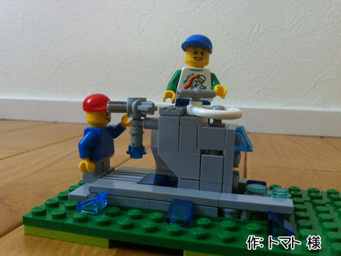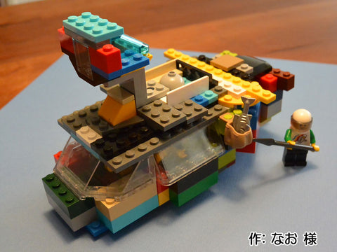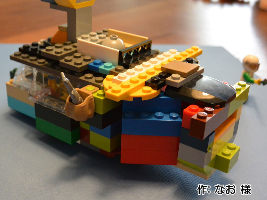 - 9歳の息子が有り合わせのパーツで作りました。 飛び出た潜望鏡部分と、後方の斜めに配置したパーツがポイントだそうです。