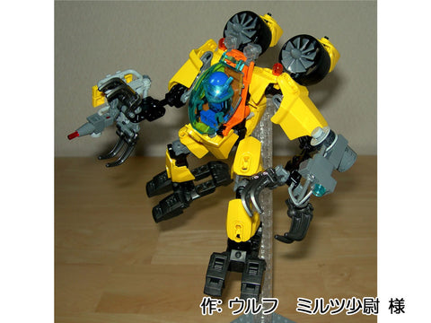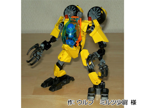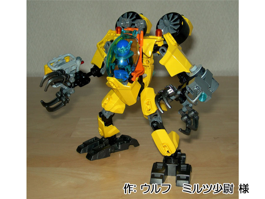 - ヒーローファクトリーの「ストーマー・フリーズマシーン」は、人が乗り込んで操縦する工業製品的デザインのロボット、所謂パワーローダー的なロボ ットとして個人的に完成されたデザインと思っておりお気に入りでありますので、ストーマー・フリーズマシーンを元にカスタマイズした作品を色々作ってきました♪ その中で、ストーマー・フリーズマシーンを元にした水中用の機体をずっと作りたく思っておりましたので、今回の作品応募のテーマが「水」だったことで、この機会に作り ましたであります!