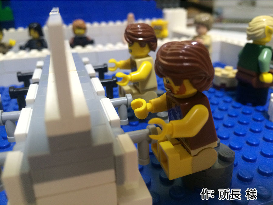 - 水面をすいーっと進む海賊船です。 バイオニクルシリーズのマスクを使った船首の表現など、 パーツの見立てにこだわりました。