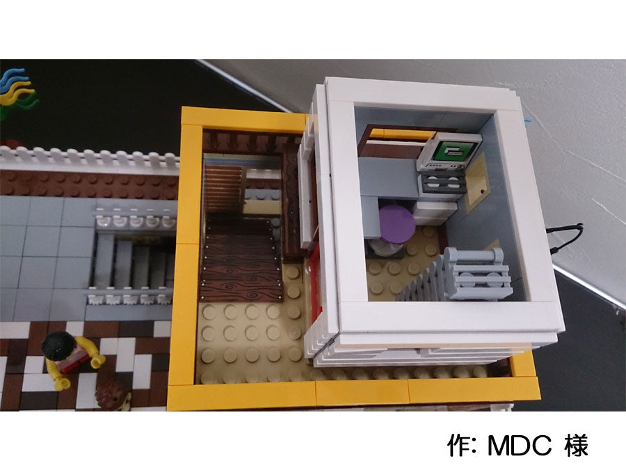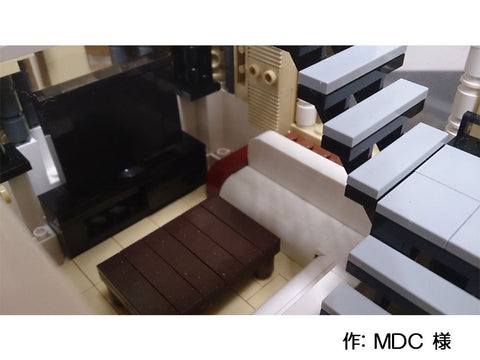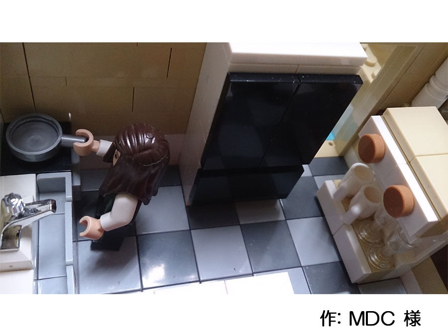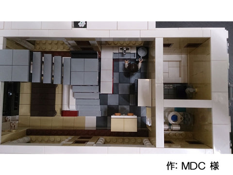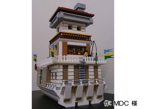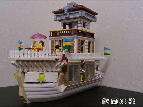 外装はもちろん、リビングのソファやキッチンボードまで驚くほど丁寧に作りこまれた非常に贅沢な作品です。 家の機能を完全に保っているからこそ船という形状がより活きて見えますね。市販のクリエイターのような”レゴらしさ”が感じられるのもポイントです。