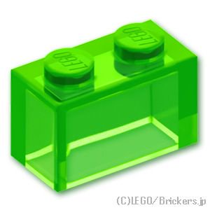 ブロック 1 x 2 - ボトムチューブ無し:[Tr,Bt Green / トランスブライトグリーン]