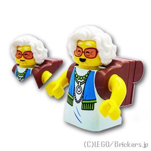 ミニフィグ ヘア - コック帽と結んだブラウンヘア:[White / ホワイト]