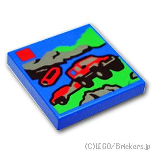 タイル 2 x 2 - 消防車 救助ボートパターン:[Blue / ブルー]