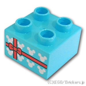 デュプロ ブロック 2 x 2 - ギフトラッピングパターン:[Md,Azure / ミディアムアズール]