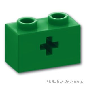 テクニック ブロック 1 x 2 - 軸穴:[Green / グリーン]