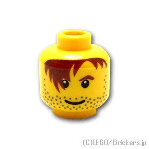 ミニフィグ ヘッド - ブラウンの前髪と無精ひげ:[Yellow / イエロー]
