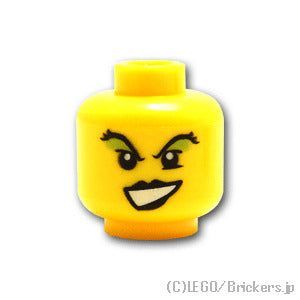 ミニフィグ ヘッド - 緑のアイシャドウと黒いリップ:[Yellow / イエロー]