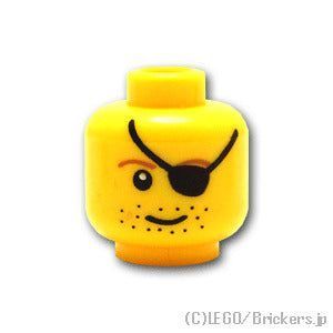 ミニフィグ ヘッド - 無精ひげとアイパッチ:[Yellow / イエロー]