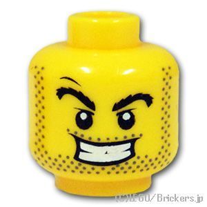 ミニフィグ ヘッド - 無精ひげと金歯の悪だくみ顔:[Yellow / イエロー]
