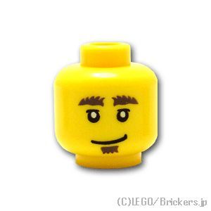 ミニフィグ デュアルヘッド - ゲジ眉とヤギひげのスマイル / いやそうな顔:[Yellow / イエロー]