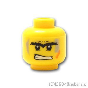 ミニフィグ デュアルヘッド - 一本眉毛と傷の怒顔 / 怖気づいた顔:[Yellow / イエロー]