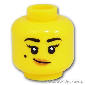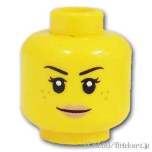 ミニフィグ デュアルヘッド - 口紅とそばかすの笑顔 / 口を開いた笑顔:[Yellow / イエロー]