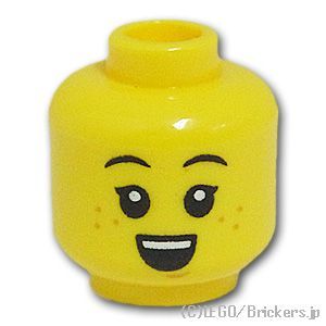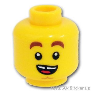 ミニフィグ ヘッド - ほうれい線と口を開けた笑顔:[Yellow / イエロー]