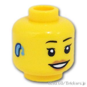ミニフィグ ヘッド - 補聴器を付けた女性:[Yellow / イエロー]