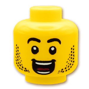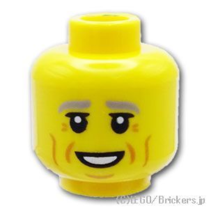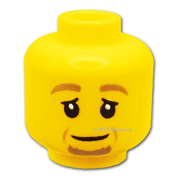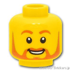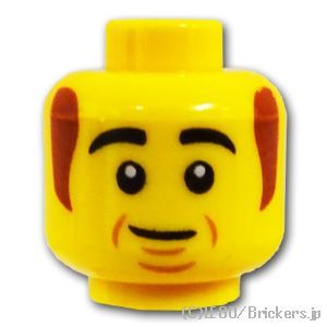 ミニフィグ ヘッド - 茶色のもみあげの似合うおじさん:[Yellow / イエロー]