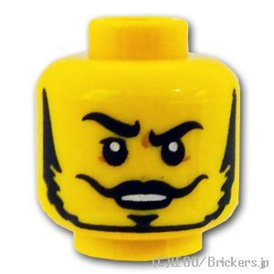 ミニフィグ ヘッド - 黒いひげに白い歯を出しているスマイル:[Yellow / イエロー]