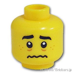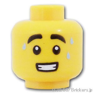 ミニフィグ ヘッド - 額に汗をかいた焦り顔:[Yellow / イエロー]