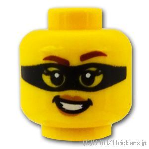 ミニフィグ ヘッド - しかめっ面の黒マスク女:[Yellow / イエロー]