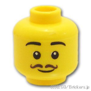 ミニフィグ ヘッド - 巻き髭と余裕の微笑:[Yellow / イエロー]