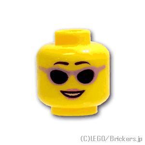 ミニフィグ デュアルヘッド - おしゃれサングラスの笑顔 / ピンクリップの笑顔:[Yellow / イエロー]