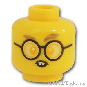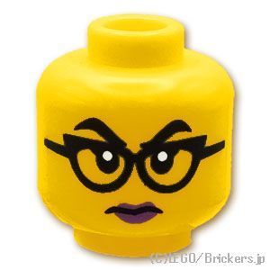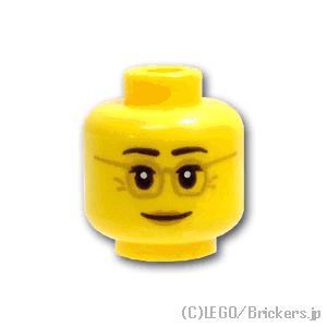 ミニフィグ ヘッド - 黒いメガネのニヤリ顔/キリリ顔:[Yellow / イエロー]