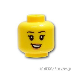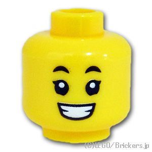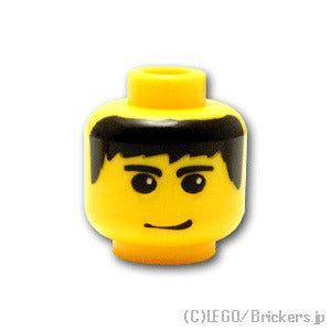 ミニフィグ ヘッド - 黒い前髪と作り笑い:[Yellow / イエロー]
