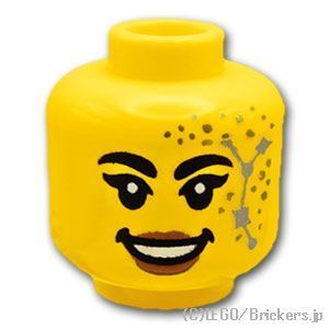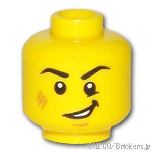 ミニフィグ ヘッド - 頬傷とニヤリスマイル:[Yellow / イエロー]