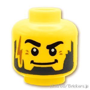 ミニフィグ ヘッド - 太い黒い眉毛に稲妻の傷跡:[Yellow / イエロー]