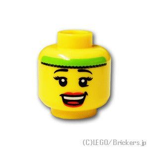 ミニフィグ ヘッド - ライムヘアバンドと赤いリップ:[Yellow / イエロー]