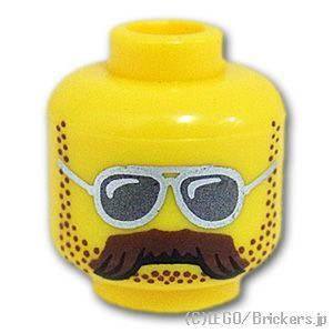 ミニフィグ ヘッド - シルバーサングラスとフサフサの髭:[Yellow / イエロー]