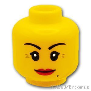 ミニフィグ デュアルヘッド - 目尻ジワの女性の微笑 / イライラ顔:[Yellow / イエロー]