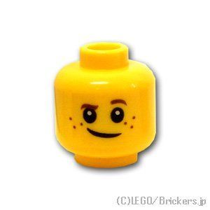 ミニフィグ ヘッド - そばかすのニヤリ顔:[Yellow / イエロー]