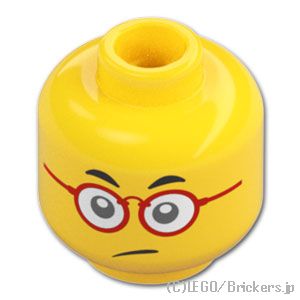 ミニフィグ ヘッド - 赤丸メガネのドヤ顔:[Yellow / イエロー]