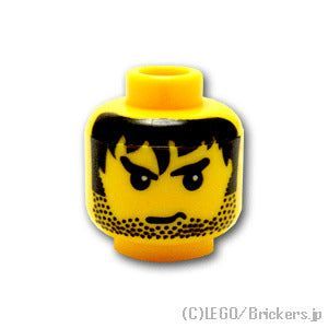ミニフィグ ヘッド - ボサボサ髪と無精ひげ:[Yellow / イエロー]
