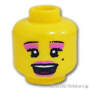 ミニフィグ ヘッド - ピンクのアイシャドウと赤いリップ:[Yellow / イエロー]