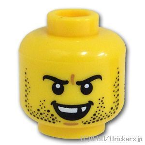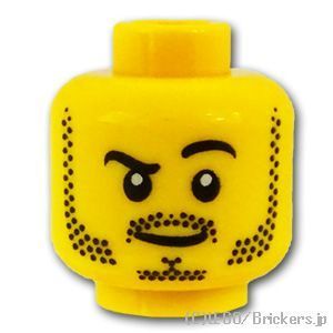 ミニフィグ ヘッド - ケツ顎無精ひげの皮肉顔:[Yellow / イエロー]