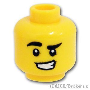 ミニフィグ ヘッド - 食いしばったニヤリ顔:[Yellow / イエロー]