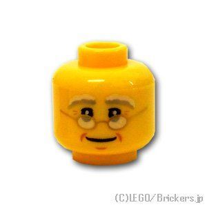ミニフィグ ヘッド - 金のメガネのおじいさん:[Yellow / イエロー]
