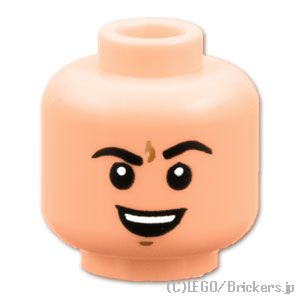 ミニフィグ デュアルヘッド - 口髭の笑顔 / 恐れた顔:[Light Nougat / ライトヌガー]