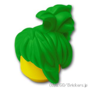 ミニフィグ ヘア - スイープアップポニーテールとクリップ:[Bt,Green / ブライトグリーン]