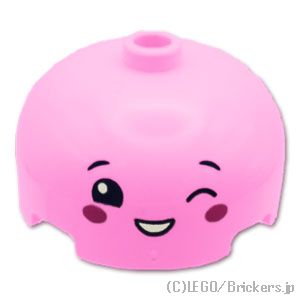 ラウンド ブロック 3 x 3 x 1 1/3 ドームトップ - ウィンクした顔:[Bright Pink / ブライトピンク]