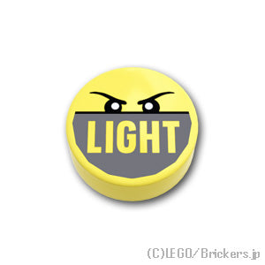 ラウンド タイル 1 x 1 - 吊り上がった眉毛と“LIGHT”ロゴ:[Bt,Lt Yellow / ブライトライトイエロー]